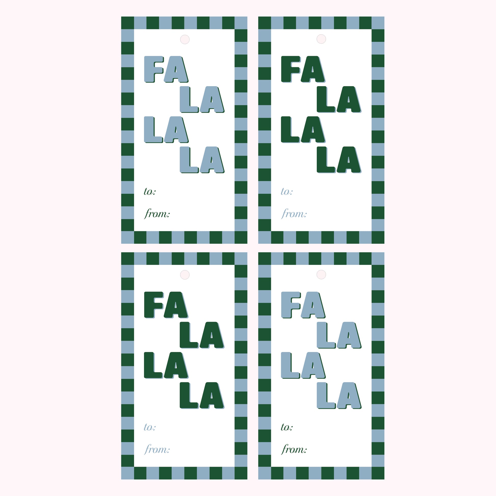Fa La La Christmas Gift Tags – 4 Pack - Blue & Green