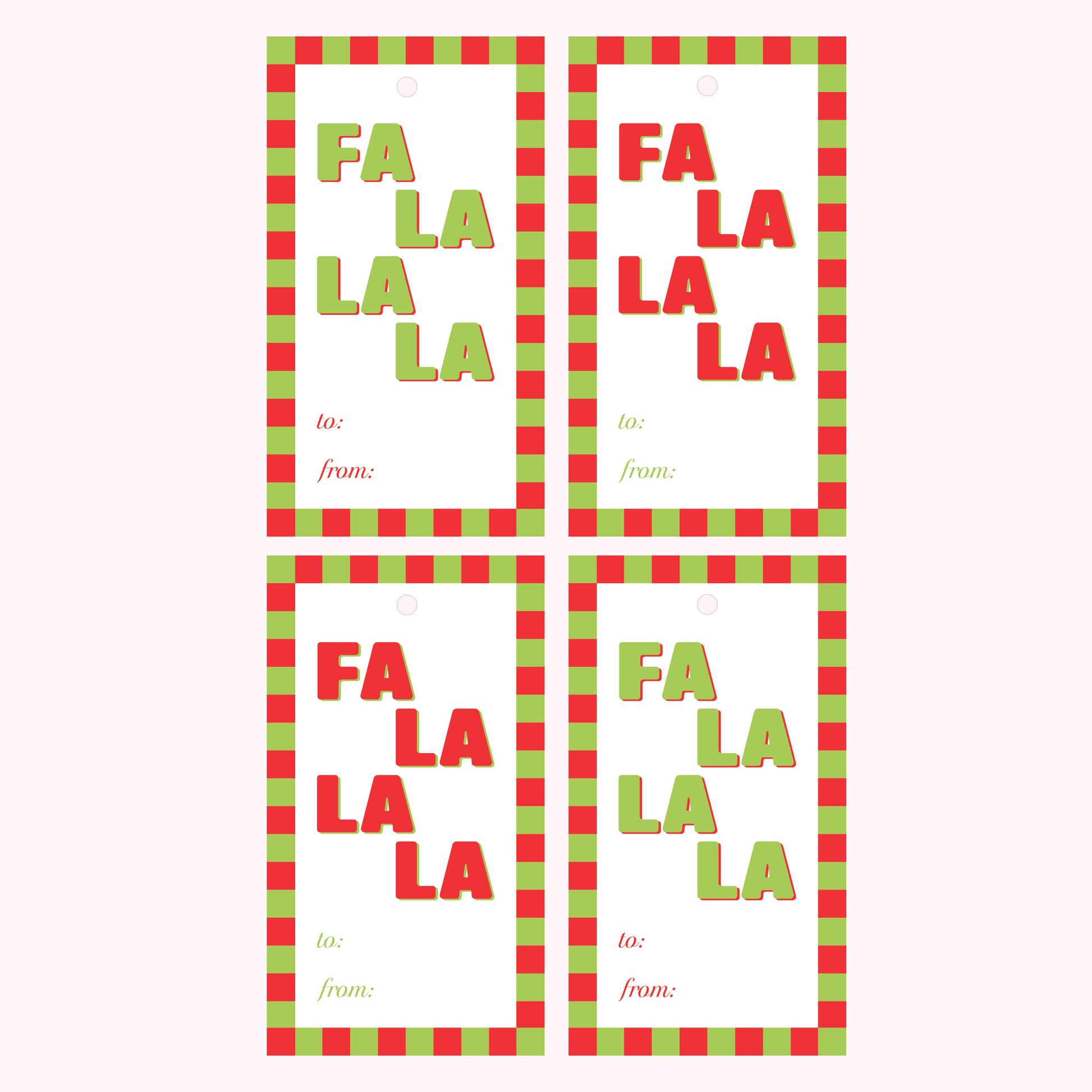 Fa La La Christmas Gift Tags – 4 Pack - Bright Green & Pink