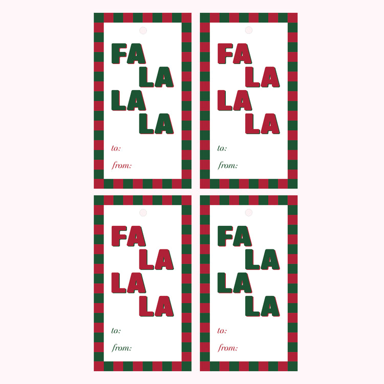 Fa La La Christmas Gift Tags – 4 Pack - Red & Green